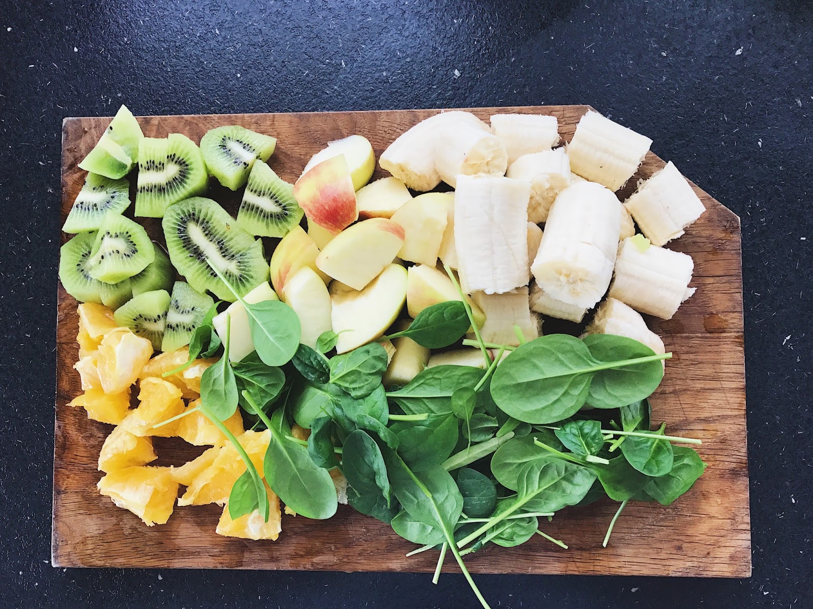 is very very simple, just put all the fruits and spinach in a bowl and crush it